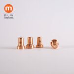 نازل برش پلاسما یک قسمت اساسی از تجهیزات برش پلاسما است که بسیار مهم است. وقتی یک جریان بالا از گاز و یک قوس الکتریکی بین دو الکترود ایجاد میشود، پلاسما تولید میشود. میدان الکتریکی و جریان گازی، یک باریکه بسیار داغ و با انرژی بالا ایجاد میکنند که مواد را برش میدهد.نازلها معمولاً از موادی مانند مس یا کرومیم تهیه میشوند تا در برابر حرارت و فشار بالای پلاسما مقاومت داشته باشند. آنها معمولاً دارای ساختار و اشکال خاصی هستند که به طور مستقیم بر روی ایجاد برش دقیق و کنترل شکل باریکه پلاسما تأثیر میگذارند.