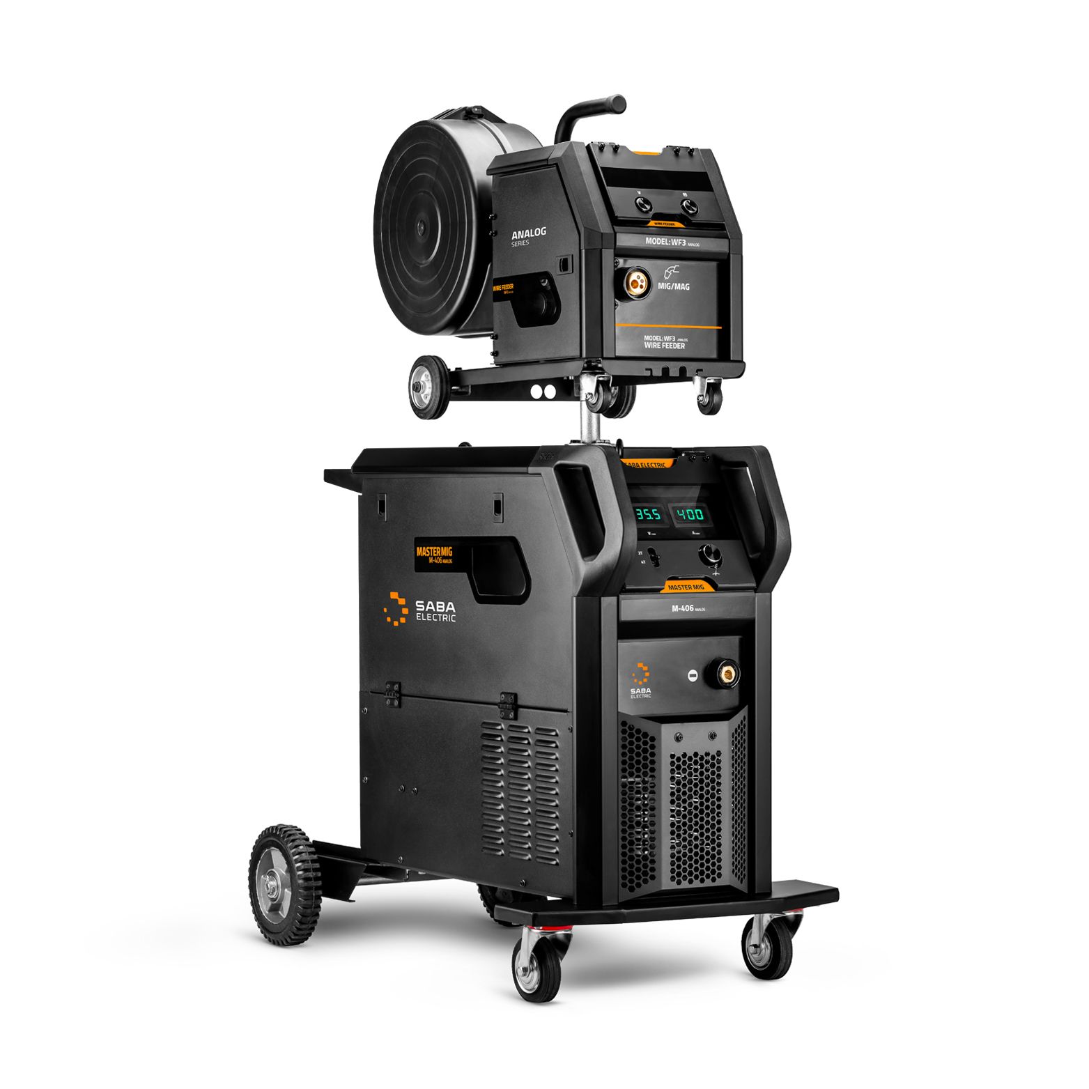 • مجهز به موتور وایر فیدر با قاب آلومینیومی دایکاست، موتور کشنده قوی، 4 غلطک و 4 چرخنده